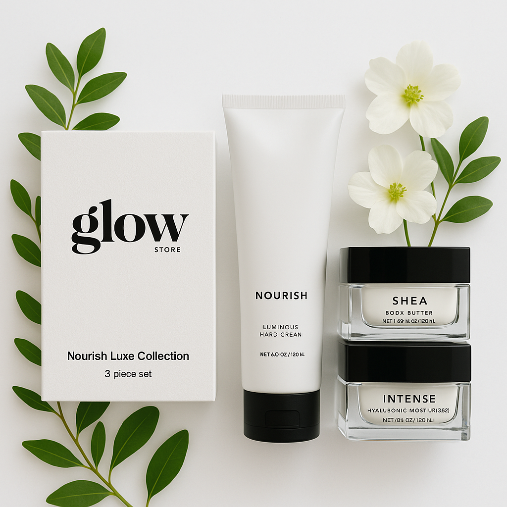 Indulge your skin in ultimate hydration and comfort with the Nourish Luxe Collection, a trio of luxurious, deeply moisturizing essentials designed to pamper, replenish, and protect. This set offers full-size products including a Shea Body Butter, a Hyaluronic Moisturizer, and a Nourish Hand Cream. This set is your one-stop solution for irresistibly soft, nourished skin, perfect for self-care days or as a thoughtful gift.